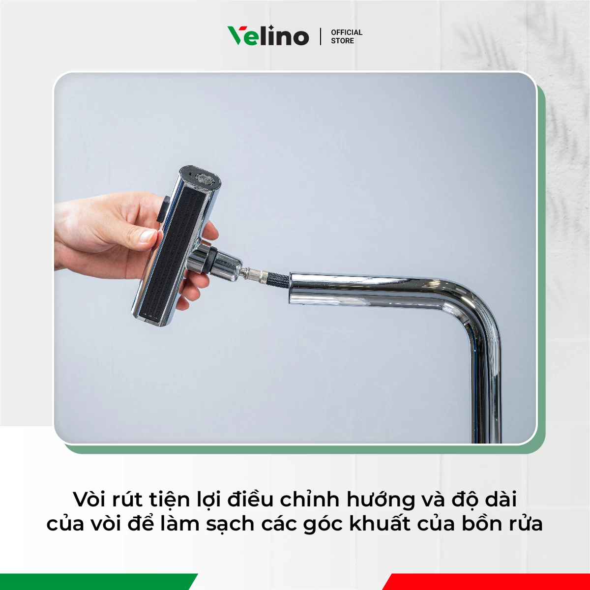 Vòi rút tiện lợi điều chỉnh hướng và độ dài của vòi để làm sạch các góc khuất của bồn rửa